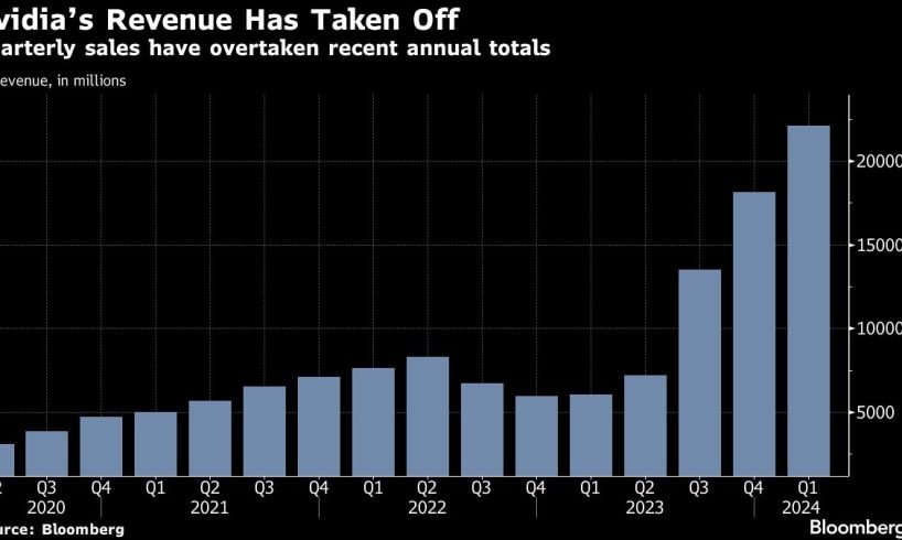 The giant chipmaker said second-quarter revenue will be about $28 billion, beating analysts’ estimates. The company also announced a 10-for-1 stock split and boosted its quarterly dividend by 150% to 10 cents a share. Nvidia’s results sent its shares as much as 7% higher in after-hours trading.