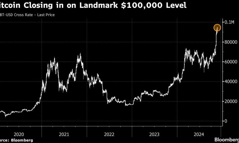 (Bloomberg) — Bitcoin closed in on the historic $100,000 level, fueled by optimism that President-elect Donald Trump’s support for crypto heralds a boom as the US pivots to friendly regulations in place of a crackdown.